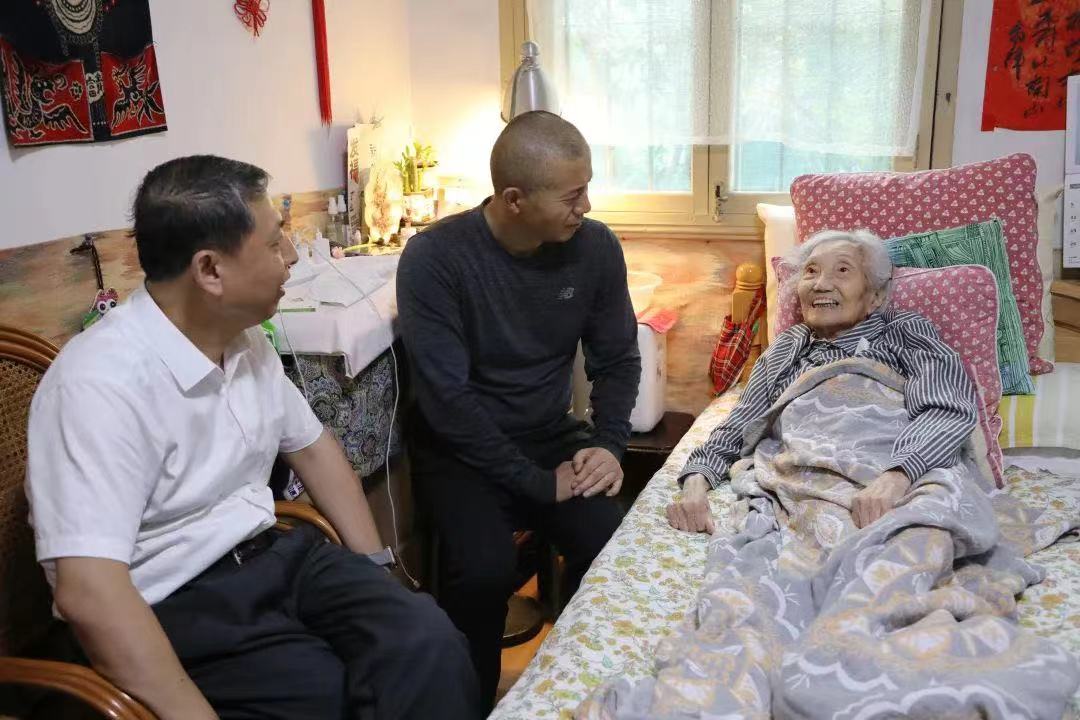 毕飞宇向杨苡转交贺信,汪兴国为她逐句诵读贺信内容。杨苡一边认真听一边用手指在信上一点点往后划,听到有感触的地方还频频点头。听完贺信后,她特别叮嘱毕飞宇和汪兴国一定要转达对铁凝主席和张宏森书记的谢意。