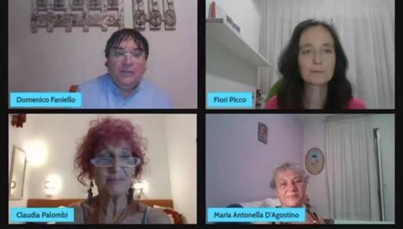 在活动上,意大利作家、翻译家、花达西亚出版社社长费沃里·皮克女士 (Fiori Picco,中文名:雪莲) ,意大利诗人、弗兰彻斯克加百利国家文学奖主席多梅尼科·法涅洛先生 (Domenico Faniello),意大利著名作家、导演克劳迪娅·帕隆比女士 (Claudia Palombi)和意大利著名诗人、画家、马泰拉文学艺术奖主席玛丽亚·安东内拉·达格斯蒂诺女士 (Maria Antonella D’Agostino)四位嘉宾就鲁敏作品展开了热烈对话,并通过优兔(Youtube)平台播放,吸引了一大批热爱文学的意大利读者在线观看。
