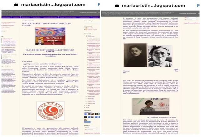 意大利“中国文学读者俱乐部”开设的文学博客页面