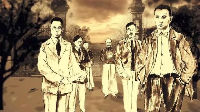 《百年学衡》纪录片片头画面:第一排,左吴宓,右梅光迪;第二排,左刘伯明,右胡先骕;第三排,左王伯沆,右柳诒徵