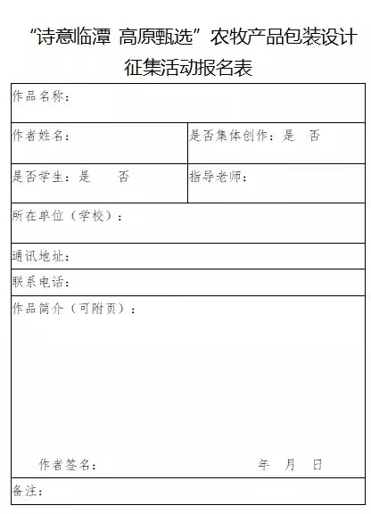 “诗意临潭 高原甄选”农牧产品包装设计征集活动报名表。