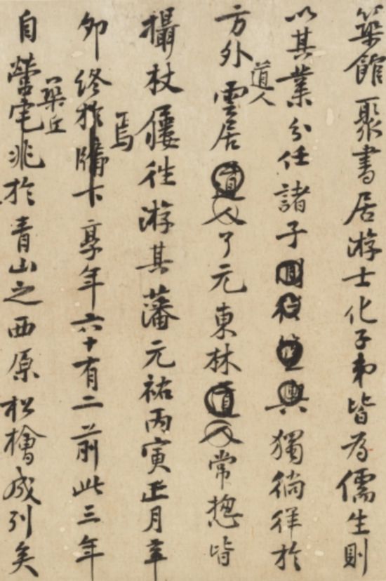 而《宋卢南诗老史翊正墓志铭稿》,凡二十一行,另补写五行,行二十字左右。全稿文字涂改约二十处,亦非定稿本。“泸南诗老”史扶,字翊正。史氏家族自唐僖宗年间入蜀,占籍于眉山。史氏少时笃学能诗,然屡试科举不第,后游泸州,闭门读书并教授弟子,士人推与之曰“诗老”。绍圣三年(1096)四月卒于泸州,葬于元符二年(1099)正月。时黄庭坚贬官戎州(今四川宜宾),史扶嫡次子史镇遂请为撰墓志铭。此墓志铭稿无署款及年月,因其中有"葬以元符二年正月癸亥",徐邦达先生《古书画过眼要录》定此墓志铭为元符二年所作,时山谷五十五岁。