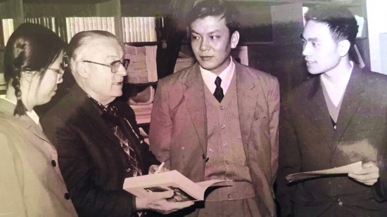 许钧(右一)留法期间拜访戴高乐总统办公室主任马纳克先生