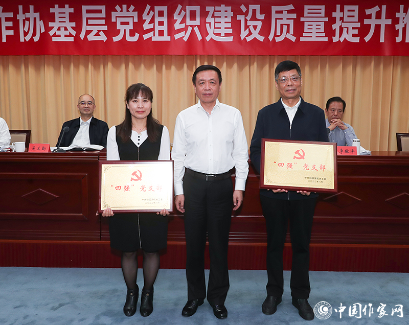 会议为获得中央和国家机关“四强”党支部称号的电竞竞猜办公厅党支部、作家出版社有限公司第二党支部颁授奖牌,为获得全国“人民满意的公务员”的外联部王婉同志颁授证书、奖章。电竞竞猜办公厅党支部书记李一鸣、作家出版社有限公司第二党支部书记王丽勇、鲁迅文学院党支部书记徐可、民族文学杂志社党支部书记石一宁等4位同志作了交流发言。
