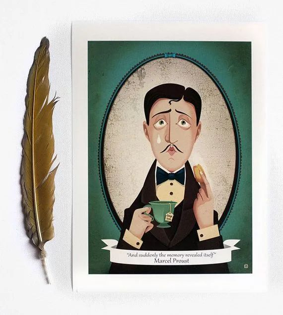 突然之间,我回忆起来了。味道正是那块小玛德莱娜的味道,在孔布雷,每星期早晨,(因为星期天在做弥撒的钟响以前我不出门),我去莱奥尼姑妈的卧房请安,她总是把小块蛋糕放进茶或椴花茶里浸一下给我吃……但是人亡物丧,昔日的一切荡然无存,唯有气味和滋味长久留存,尽管更微弱,却更富有生命力,更无形,更坚韧,更忠诚,有如灵魂,在万物的废墟上,让人们去回想,去等待,去盼望,在几乎摸不着的网点上不屈不挠地建起宏伟的回忆大厦。