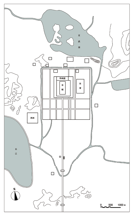 在梁朝之前,建康华林园的主要景致已经建成,山水佳胜,花木繁茂,殿堂楼台连绵起伏。其总体格局模仿曹魏时期的洛阳华林园,西北部堆筑大土山,称“景阳山”,东南部开辟大片水池,名为“天渊池”。