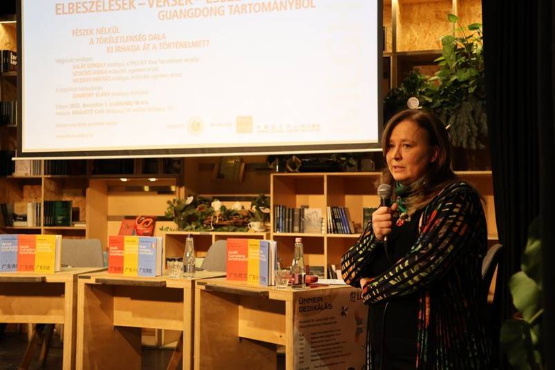 宗博莉·克拉拉对本套作品及广东省作家的基本情况进行了介绍,并邀请嘉宾们就读书感受进行交流。索卡奇·金嘉表示,作家们的散文作品包罗万象,从最微小的细节到最宏大的人生问题,为自己打开了一个令人难以置信的、多种多样、丰富多彩的世界。邵来特·盖尔盖伊以熊育群的《无巢》为例介绍说,广东省是中国最发达的地区之一,但历史悠久的传统习俗依旧存于人们的日常生活中。维岑蒂·马加什则表示,从广东省诗人的作品中,能读到普通“小人物们”的生存状态和深刻情感,如“遥远的家乡”“身患重病的父亲”和“漂泊的打工生活”等。