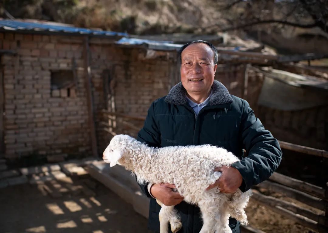 11月16日,宁夏西吉县农民作家李成山抱着家中的小羊羔 冯开华 / 摄