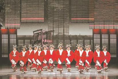 舞剧《五星出东方》“锦绣”舞段在舞台上营造的庄重威仪之感还离不开一个重要的道具:屏风。