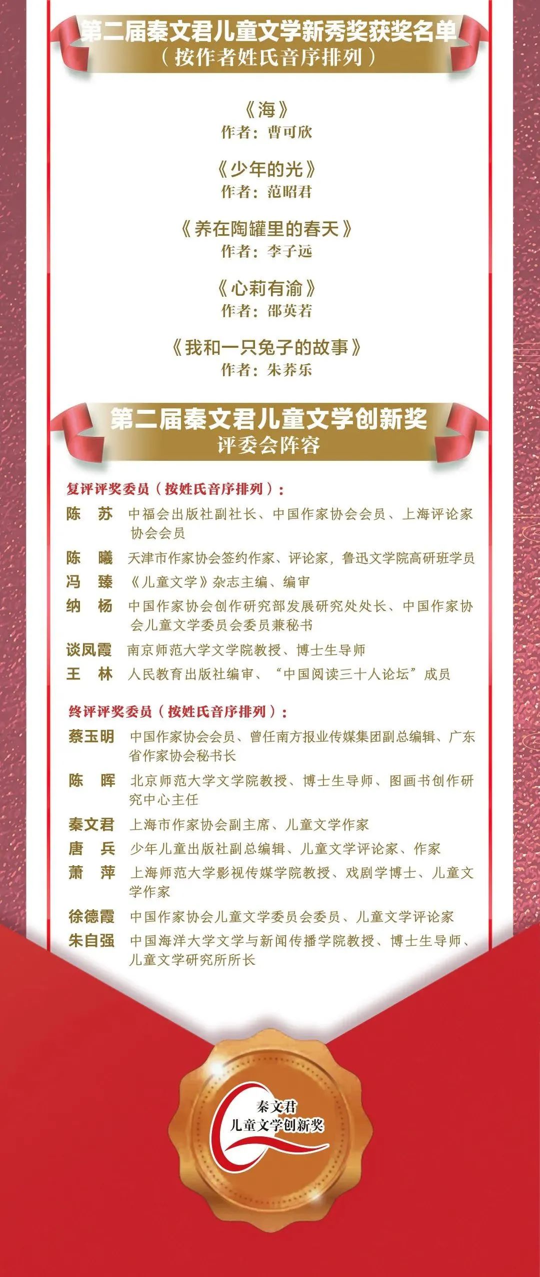 第二届秦文君儿童文学创新奖颁奖,第三届正式启动