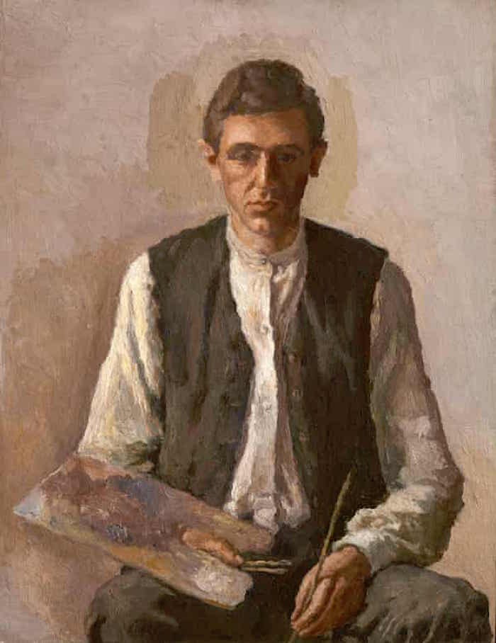 他可能是位农民,也可能是位体力劳动者,他穿着无领衬衫和棕色马甲,正坦率地看着你。但是,他手中的画笔和调色板证实了他的真实职业。这是乔治·莫兰迪(Giorgio Morandi)在1925年时创作的一幅令人深受喜爱的《自画像》。彼时他才30多岁。