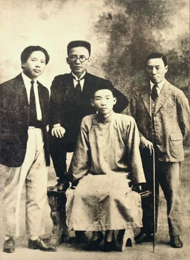 1926年春创造社同人合影,左起为王独清、郭沫若、郁达夫、成仿吾