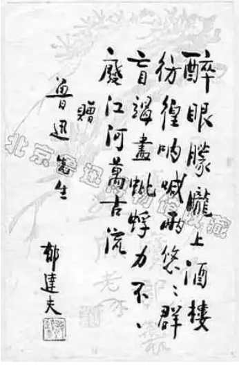 鲁迅与郁达夫也都是诗人,都有细腻敏感的诗的心灵。尤其是旧体诗词,郁达夫一生创作了至少400多首,鲁迅则留下70余首。二人曾经唱和酬答,留下不少佳话。