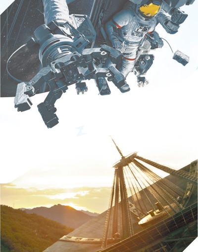 在电影里呈现出“历史的质感”,成为郭帆创作《流浪地球2》的目标,这对影片中科学理论和科学实践的真实性和完整性都提出了很高要求。喷射蓝光的行星发动机、洞悉一切的量子计算机、直冲云霄的太空电梯……《流浪地球2》中的“硬科技”元素让观众大呼过瘾。这些“硬科技”是由一系列严谨缜密的想象、设计、计算、推演得来的,多名中国科学院的科学家作为科学顾问,帮助影片完善世界观架构和视觉呈现效果。