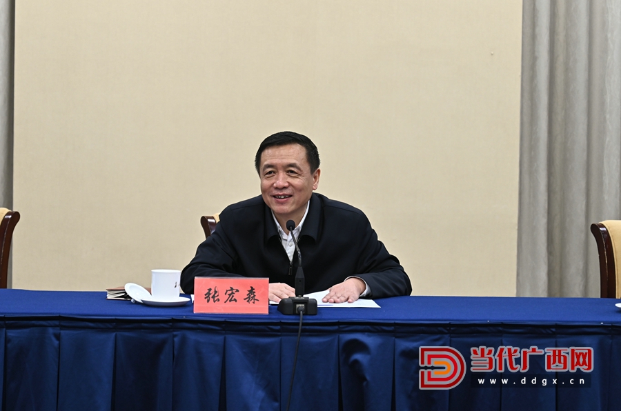 调研期间,张宏森与广西作家代表座谈。石才夫、冯艺、张燕玲、凡一平、朱山坡、红日、李约热、王勇英、我本纯洁、黄其龙等15名作家分别介绍了自己的创作情况,并围绕如何推动作协组织工作、如何实现文学的“破圈”、如何促进边疆民族地区文学事业繁荣发展等进行交流。张宏森认真听取大家的发言,与大家亲切交谈,不时详细询问相关情况,现场氛围轻松热烈。