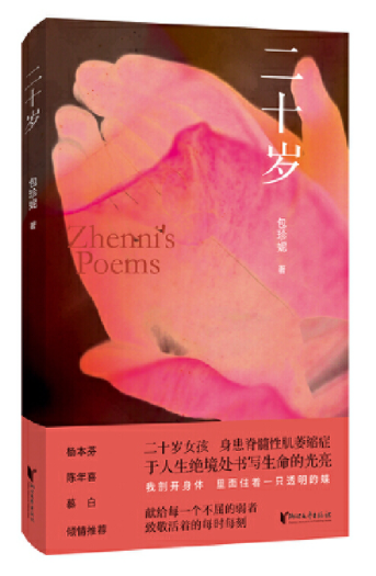 《二十岁》是浙江省温州市文成县女孩包珍妮的诗集。包珍妮罹患脊髓性肌萎缩症(SMA),医生曾“宣判”她活不过4岁,但她现在已活过了20岁。她多次闯“鬼门关”,正常的肺功能早已丧失,呼吸依赖一台24小时不间断运作的呼吸机。她不仅自己与病魔顽强抗争,还鼓励父母要勇敢面对现实。为了活出生命的意义,她凭借唯一能动的右手大拇指,在手机上创作诗和歌词。她的作品被毛不易、廖俊涛、钟易轩等明星传唱。著名诗人商震、谢克强、慕白等都被她的事迹感动,给予其诗作好评。