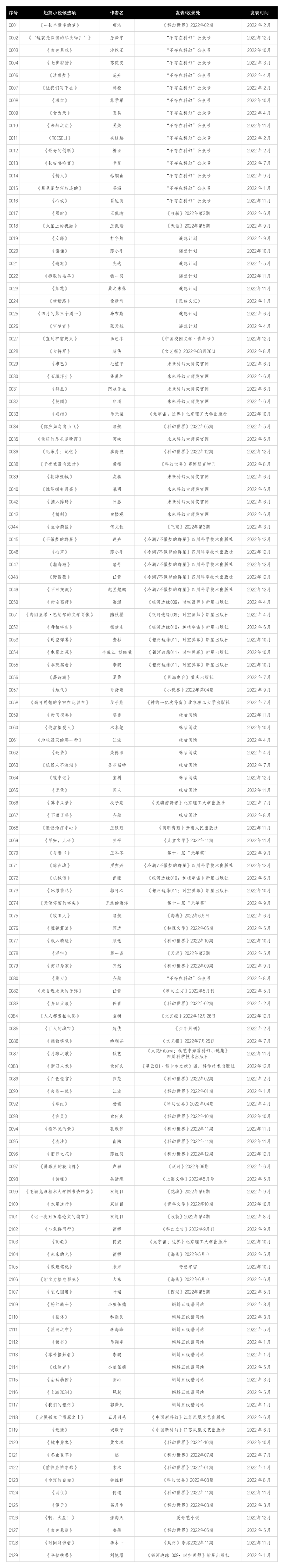三、短篇小说候选参考名单