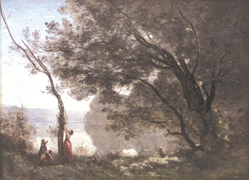 19世纪初,最早被吸引到巴比松的是风景画大师卡米耶·柯罗(Camille Corot,1796-1876)。他生于巴黎一个富商之家,得父母应允和资助,自青年时期开始习画,打下坚实的传统美术基础。但是,他更倾向于露天写生,自由地深入大自然,畅想描绘林中仙女和人身羊足、头上长角的农牧神,形成自身独特的天然景色结构。他以《塞纳河岸》和《阿沃莱市郊》等作品称稀,成为首位妙笔卓著的巴比松派画家。