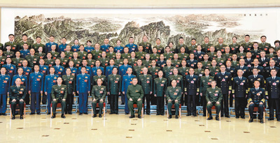 会前,习近平亲切接见出席十四届全国人大一次会议解放军和武警部队代表团全体代表,并同大家合影留念。