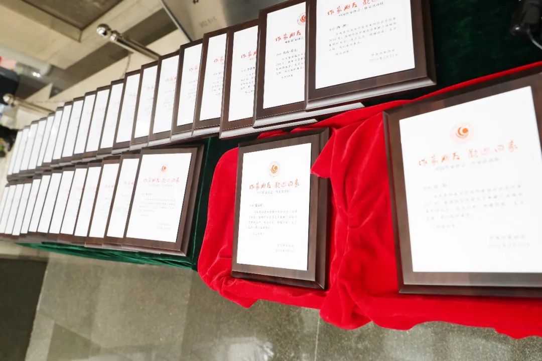 听到名字后,作家们依次上台,领取“入会纪念牌”。大家难掩激动的心情,轻轻抚摸、细细查看手中的纪念牌。牌子上的数字像脐带一样连接着作家与“家”,铭刻着作家与“家”之间的深情厚谊。