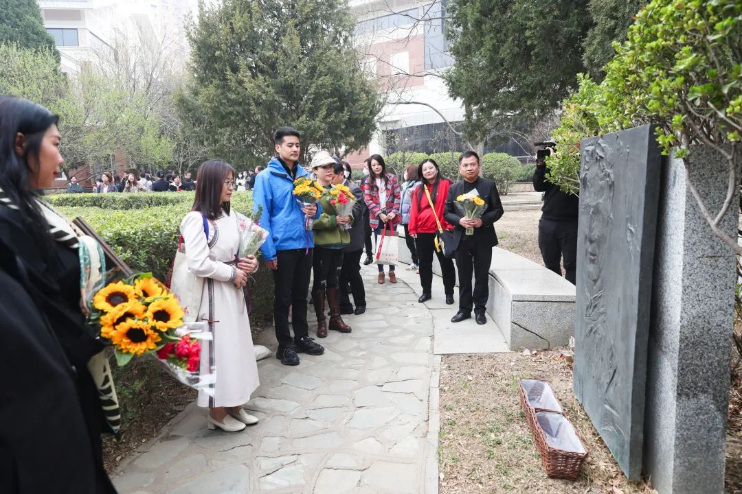 3月的中国现代文学馆,杨柳吐绿,玉兰芬芳,桃李争妍。园内散落着13尊中国现代作家雕塑:鲁迅、郭沫若、茅盾、巴金、老舍、曹禺、艾青、丁玲、赵树理、冰心、叶圣陶、朱自清、沈从文,栩栩如生的塑像让人感到文学馆浓郁的文学氛围。作家们怀着肃穆的心情依次走到雕塑前,向他们崇敬的文学前辈献上鲜花,表达由衷的敬意。此刻,中国文学的经典与新生力量在此交汇。