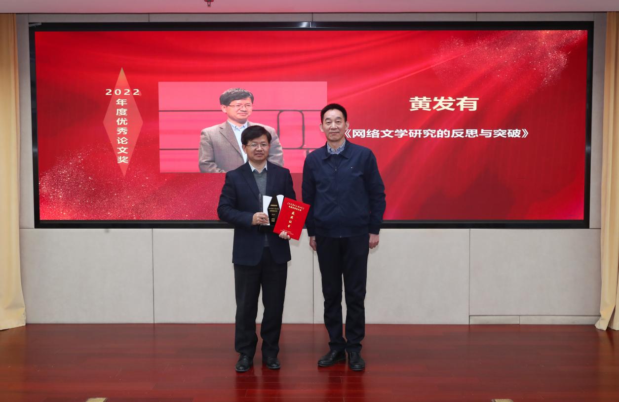 电竞竞猜党组成员、书记处书记施战军为获奖者黄发有颁奖