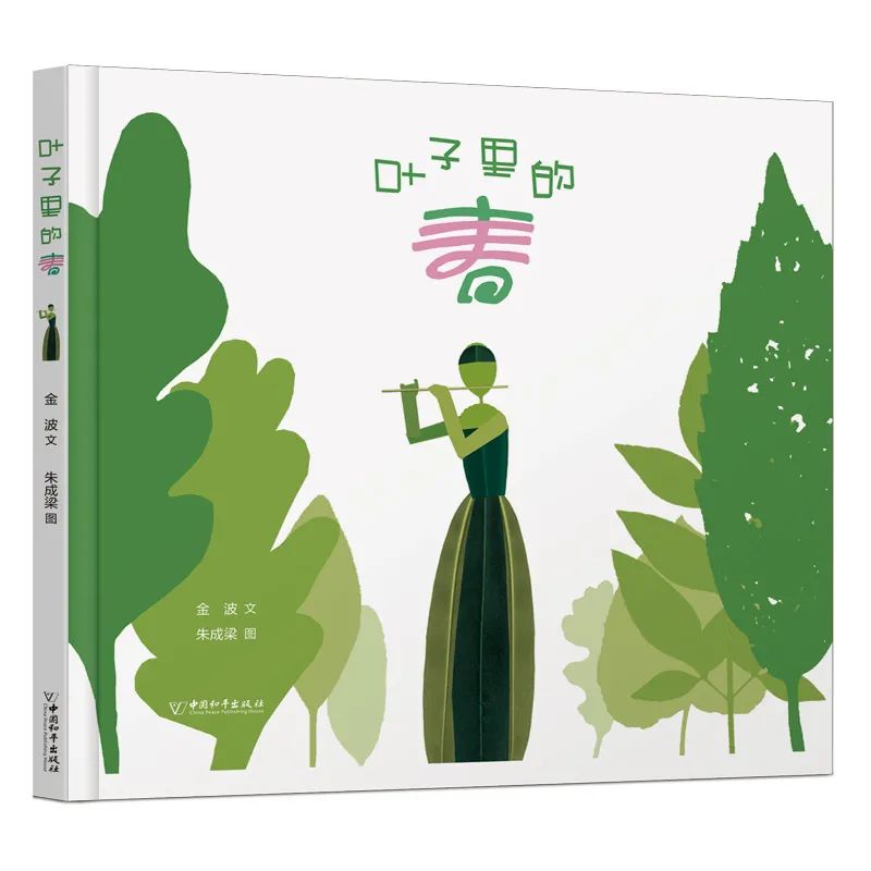 “笛声悠扬呼唤立春,琵琶弦弦弹奏雨水,鼓声阵阵大地惊蛰,提琴缓缓春分来临……诗歌和画面时而重合时而平行,让作品产生了一种流动的音乐感。”《叶子里的春》由著名诗人、儿童文学作家金波和著名图画书作家、插画家朱成梁共同创作,以叶子为素材,组合成众多新的形象,讲述了一个关于树叶、音乐、节气和春姑娘的故事。
