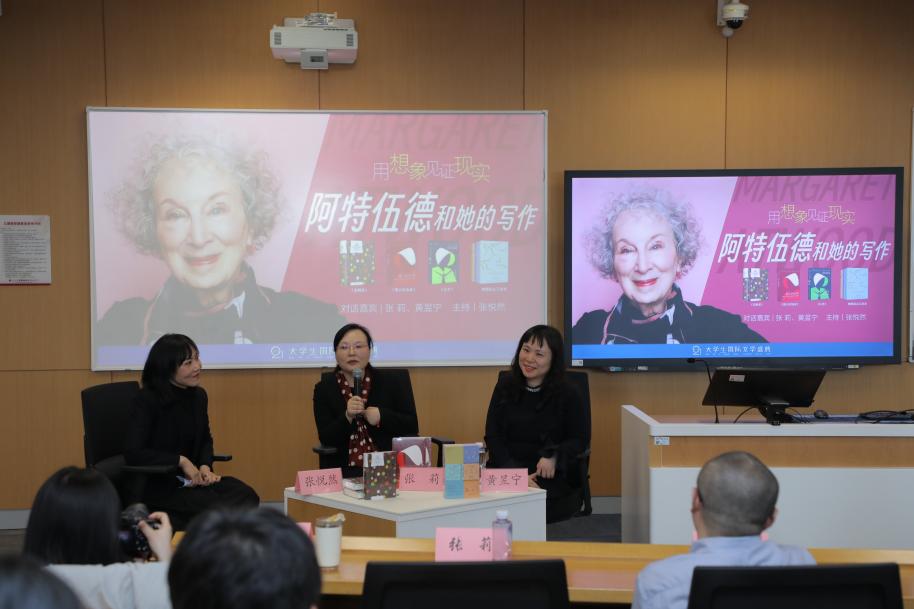 3月31日,由江苏凤凰出版传媒股份有限公司与中国人民大学国际写作中心联合主办的“21大学生国际文学盛典之致敬阿特伍德”在京举办。中国人民大学文学院副院长杨庆祥、译林出版社总编辑袁楠代表主办方致辞,阿特伍德通过视频发表了感言。