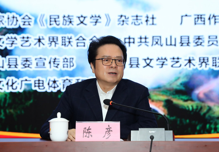 活动启动仪式于4月1日上午举行,陈彦在讲话中说,“新时代 新征程——《民族文学》创阅中心河池现场经验交流会暨多民族文学名家走进凤山”活动是河池文学与文化事业繁荣发展的一件盛事,也是中国少数民族文学事业后继有人的一件喜事。习近平总书记在党的二十大报告中强调,“坚持以人民为中心的创作导向,推出更多增强人民精神力量的优秀作品,培育造就大批德艺双馨的文学艺术家和规模宏大的文化文艺人才队伍。”中国文学的可持续发展依靠德艺双馨的大量人才和优秀作品,《民族文学》是培养和扶持少数民族作家的摇篮,《民族文学》创阅中心是发现和培养基层作家及文学新人的创新平台。希望《民族文学》搭建好各类平台,发挥好团结和引领作用,引导少数民族作家增强责任感和使命感,站在新时代新征程这一新的历史方位,自觉地关注、观察和扎根现实生活,从广袤的生活沃野中提炼主题、萃取题材,生动表现波澜壮阔的社会变革、丰富多彩的民族文化和各族人民锐意进取、团结奋斗的精神风貌。