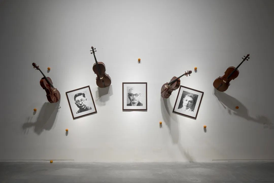 展览现场,巴拉佐·迪米提杰维奇,《后历史使者》,2006年,照片、提琴,尺寸可变。