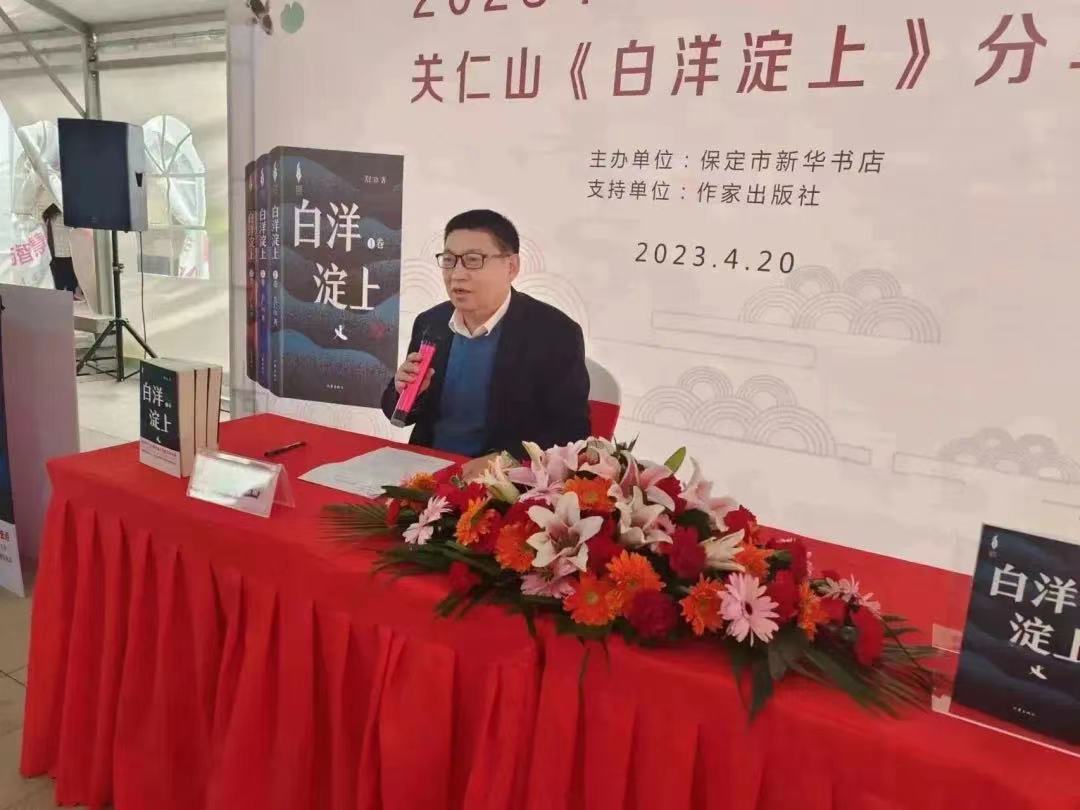 主会场启动仪式结束后,与会领导与嘉宾来到书市现场参加了关仁山《白洋淀上》分享会,聆听其创作经历,并签名留念。