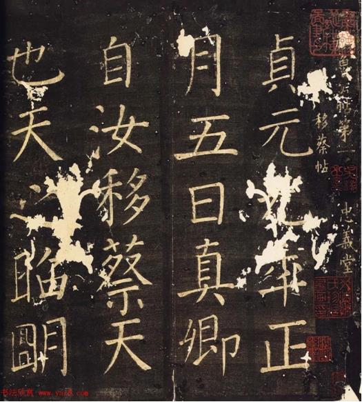 贞元元年正月五日,真卿自汝移蔡,天也。天之昭明,其可诬乎?有唐之德,则不朽耳。十九日书。