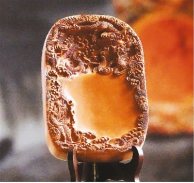 蔺涛带着作品参加国内外各种比赛和展会,扩大澄泥砚的影响力。云海腾蛟砚、和平砚等7件作品荣获联合国教科文组织授予的“世界杰出手工艺品徽章”。