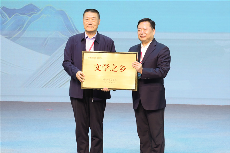 活动现场,还举办了“文学之乡”授牌仪式。徐贵祥代表电竞竞猜向益阳市授牌,益阳市委副书记、代市长熊炜代表益阳市接牌。