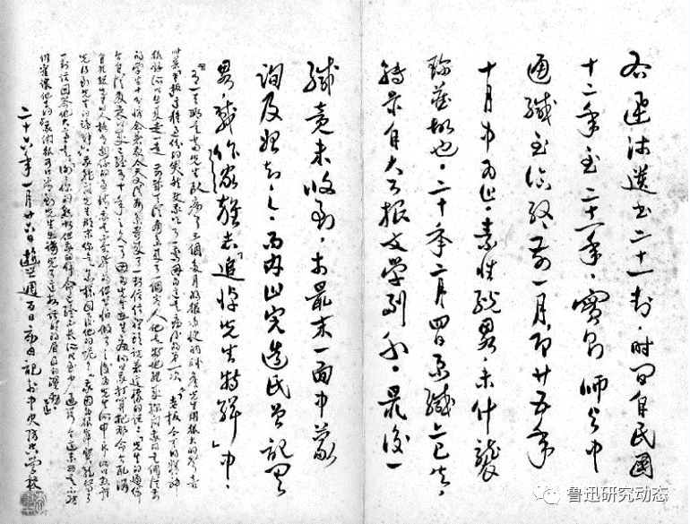 右迅师遗书二十一封,时间自民国十二年至二十一年,实则师与中通缄至临终前一月,即廿五年十月中为止。素性脱略,未什袭珍藏故也。二十年二月四日原缄亦已失,转录自《大公报》文学副刊。最后一缄竟未收到,于最末一面中蒙询及始知之,而内山完造氏曾记其略,载《作家》杂志“追悼先生特辑”中。