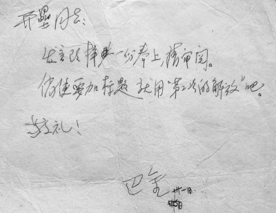 一封巴金短笺与“第二次的解放”
