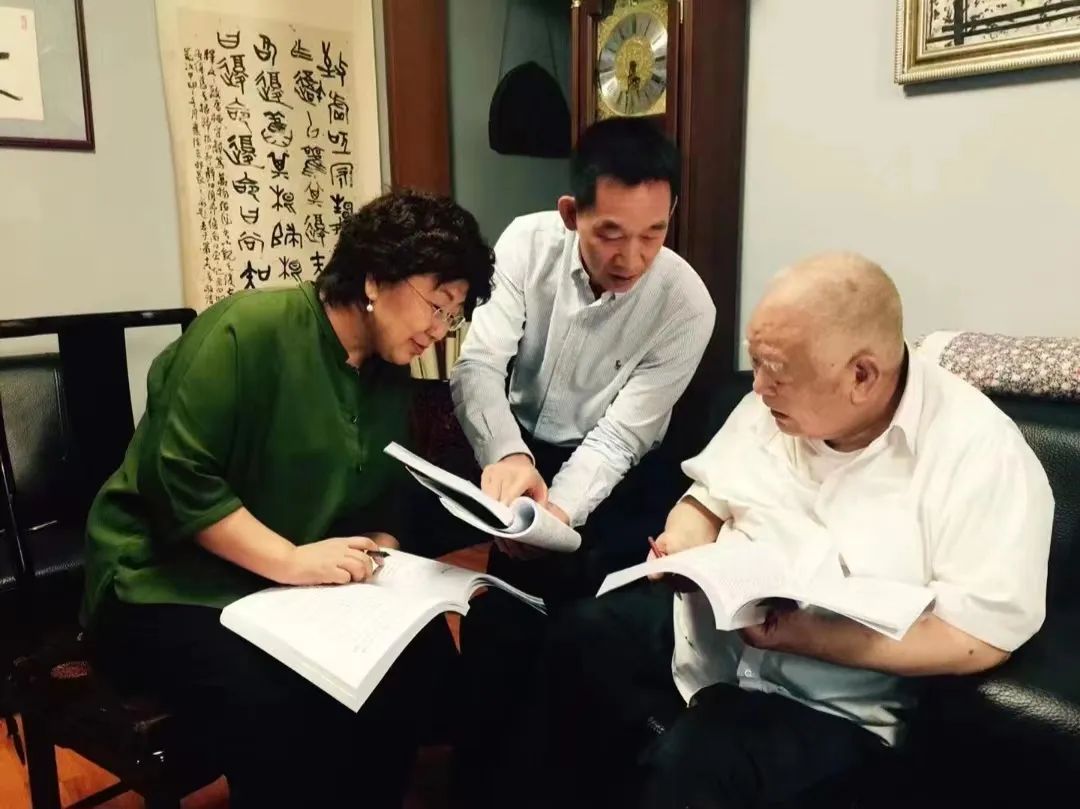 在徐怀中家中编校《牵风记》,左起:徐坤、施战军、徐怀中