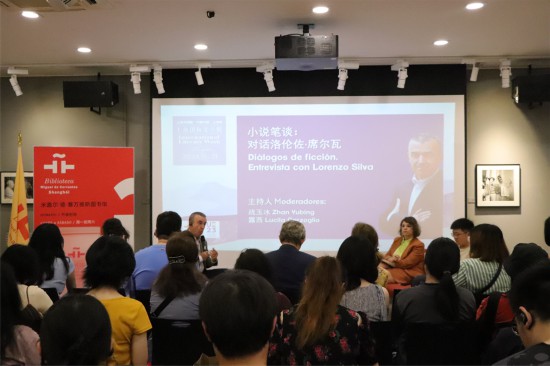 8月16日晚,上海国际文学周期间,在上海塞万提斯图书馆,西班牙作家洛伦佐·席尔瓦(Lorenzo Silva)与青年学者战玉冰、阿根廷编辑露西娜·卡尔索格里奥(Lucila Carzoglio),就西班牙侦探小说与电影等表现形式的关系展开对谈。