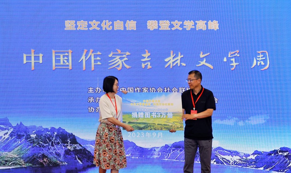 启动仪式现场举行“大地文心·生态吉林”全国知名作家吉林行主题采访采风活动授旗仪式和“新时代山乡巨变文学与你同行”图书捐赠仪式。