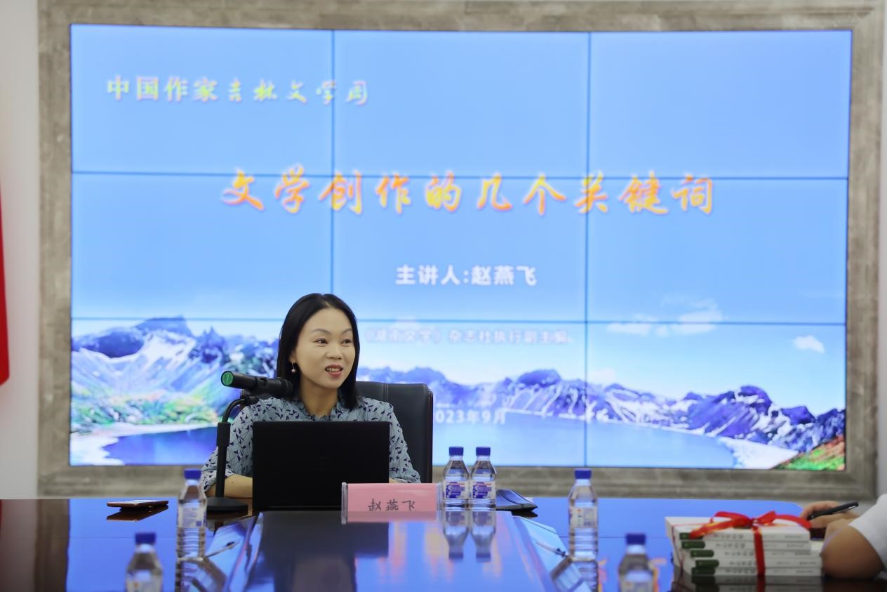 在吉林省光大建设集团有限公司,赵燕飞为职工们讲授了一堂深入浅出的文学课。在她看来,文学创作最关键的是辨识度、真实度和角度,其中“辨识度”主要体现为作家强烈的个人风格和标签,进而形成独具特色的个人魅力。她借用莫泊桑的《项链》来阐发“真实度”的意义,为大家详细阐释了创作中文本逻辑、情感逻辑和社会逻辑的重要性,并以《红楼梦》为例说明文学的面貌与写作者观察世界的视角有关,文学创作的角度会随着作者心境的不同而发生变化。