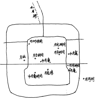 浏览北京地图,发现有多条以“月光”“月牙”“月河”“月树”而称的胡同,细细品味,颇有意境。