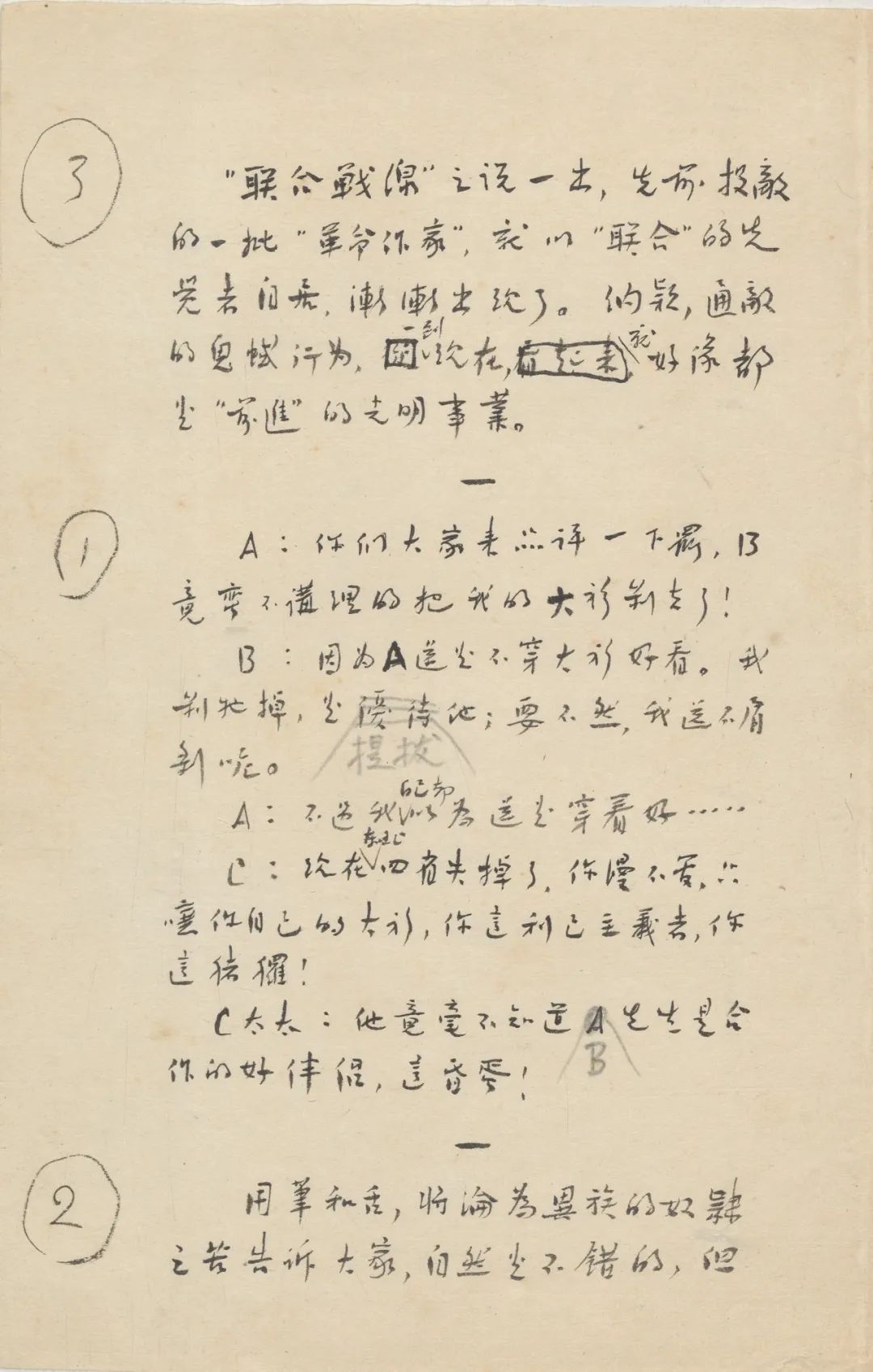 4.《半夏小集》:约写于1936年8月或9月初,发表于1936年10月《作家》月刊第2卷第1期。“半夏”是中药名,药性微毒,以此为题有以毒攻毒之意。与鲁迅晚期创作手稿不同,使用普通白纸。据冯雪峰回忆,该文完成初稿后,由鲁迅口述修改,冯雪峰执笔改动,再由许广平誊抄用于发表。本件手稿(见插图)中墨色较淡的修改字迹出自冯雪峰之手。