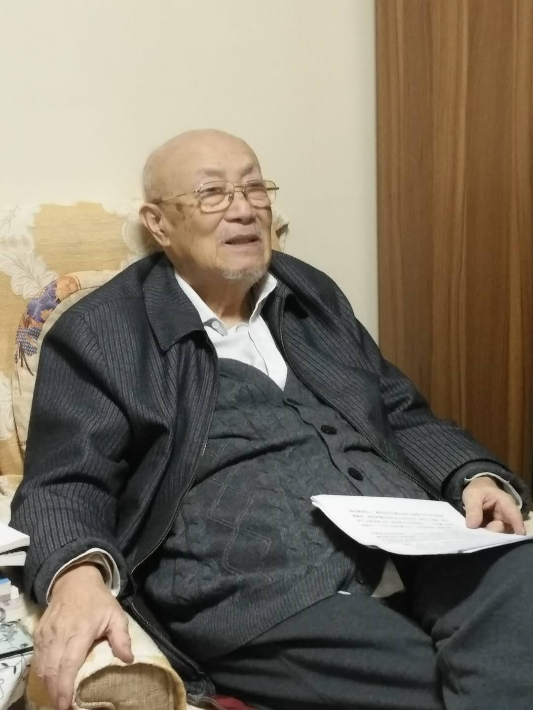 一晃半年过去,我9月初刚刚调整了工作,由征集室调往保管阅览部。由于以后将不再负责征集,我想我可能与这位老人见面的机会会少一些。不成想,10月初《传记文学》杂志想2018年年初做一期屠岸先生的专题,斯日主编知道我与屠老比较熟,希望我能帮忙联系,她想对屠岸先生进行一次专访。在征得屠岸先生同意后,10月14日下午,我陪着斯日主编前去屠老家中拜访。那天,屠老比我上次来时感觉身体弱了些,但精神还是很不错。那次采访大概进行了一个多小时,斯日主编提问,屠岸老师作答,我则坐在一边静静地听着。屠岸老师在采访中讲起了他的父母、他的学生时代、他的表格周有光、他所喜欢的莎士比亚、他对诗歌的看法。当讲到他亲历的那些人生坎坷时,屠岸先生是那样的平静,那样的淡定,他那优雅的气质,让我倾服。老先生在回顾其一生时,他微笑着说自己真的是“生正逢时”,没有什么可遗憾,也没有什么可抱怨的。