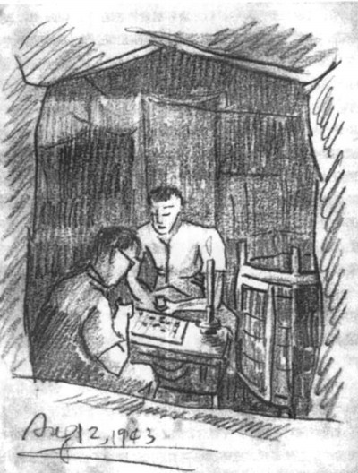 除了诗歌,屠老还从母亲那里学习绘画。他尤喜速写。十九岁那年夏天,在吕城,屠岸画了很多速写,其中有一幅他与哥哥下棋的炭笔自画速写,他自己极为喜欢,并一直保存下来。后来这幅画被他选入自述集《我的诗歌创作·“诗呆子”的痴迷状态》中的插图。