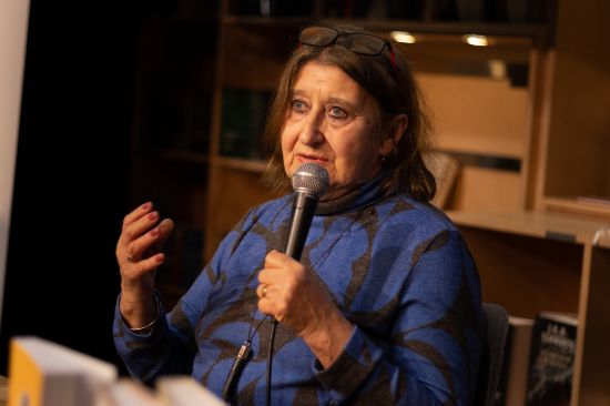 图为Geopen出版社主编鲍拉日·埃娃介绍作品
