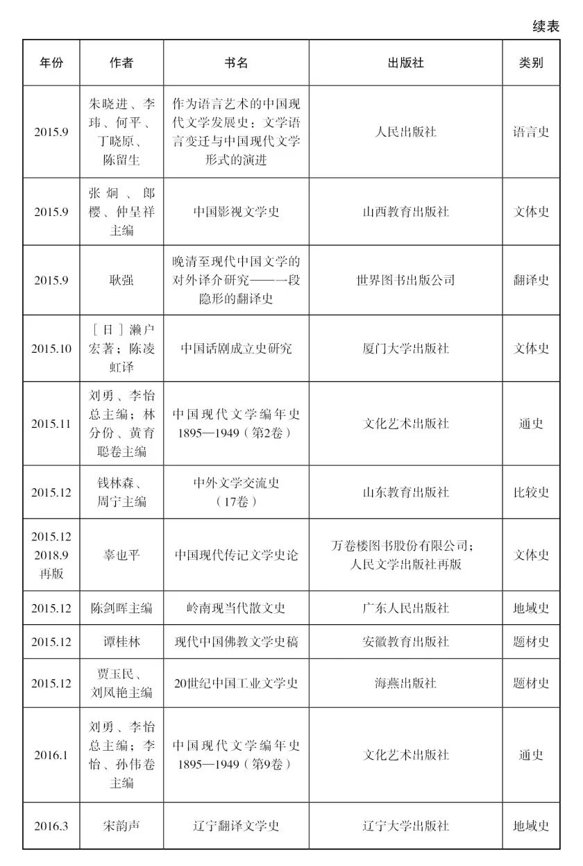必须说明的是,一些研究著作之所以会被列入目录,唯一原因在于这些著作清晰地展现了某一类文学史研究对象的发展和流变,在研究的过程中凸显了“史”的脉络,因而也就多少具有了“文学史”的性质。[1]这与研究本身是否具有深度,并无任何关系。