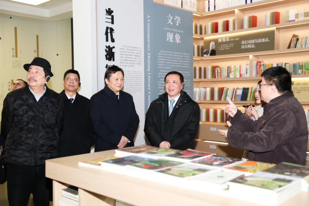 随后,张宏森一行考察调研了“浙水敷文——浙江古代文学”展厅、宋韵浙江经典作品场景体验厅、现代浙江经典作品场景体验厅、文学数字应用体验厅和儿童文学体验厅。
