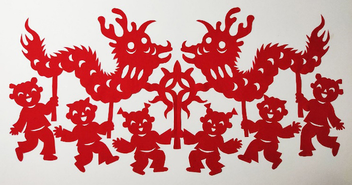 图8:剪纸中的龙灯会 图片来源于网络