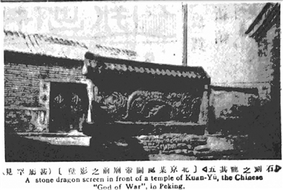 “北京某处关帝庙前之影壁(甚属罕见)”