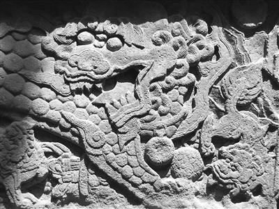 须知,以龙为主图装饰的影壁,在北京、山西等地并不少见,什么九龙、五龙、三龙、独龙壁,至今仍存有相当数量。可这里刊发出来的“北京某处关帝庙前之影壁”图片,明确称其为“石刻之龙”,这就与现存的、几乎全部为砖砌成壁、琉璃塑像工艺的影壁有很大区别了。